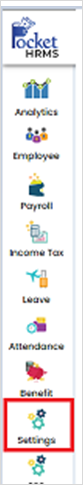 **Step 1** : Go into the Setting Menu in the Left hand side of the dashboard in the Pocket HRMS