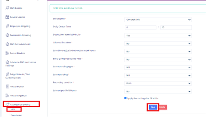Further, click on the check box below if you want this setting to be applied for all the shift