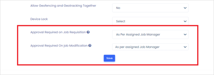 ESS settings->>profile info->>Approval required on Job requisition and Approval required on Job Modification->>Approval required/Approval not required.