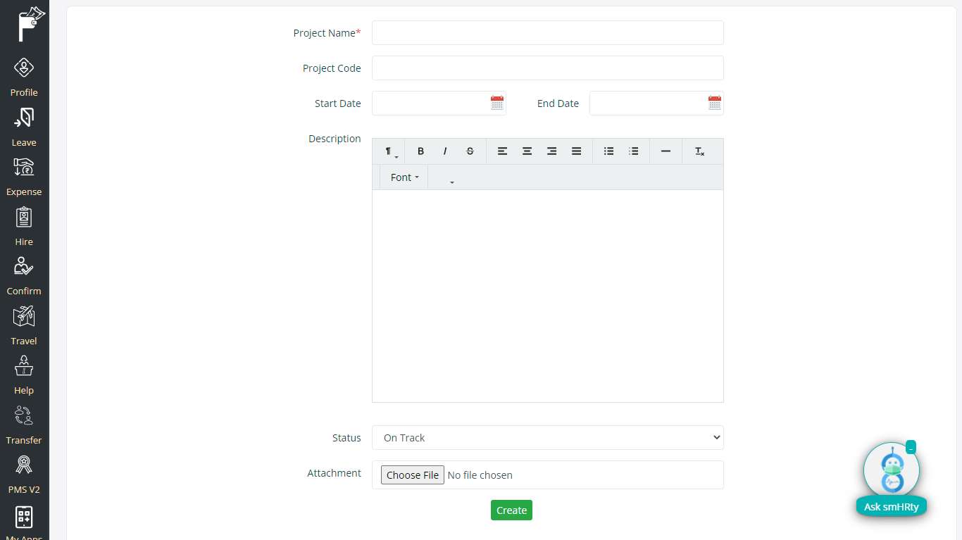 **Step 4:** Enter the required details and click on the ‘Create’ button to create a new sub-project.