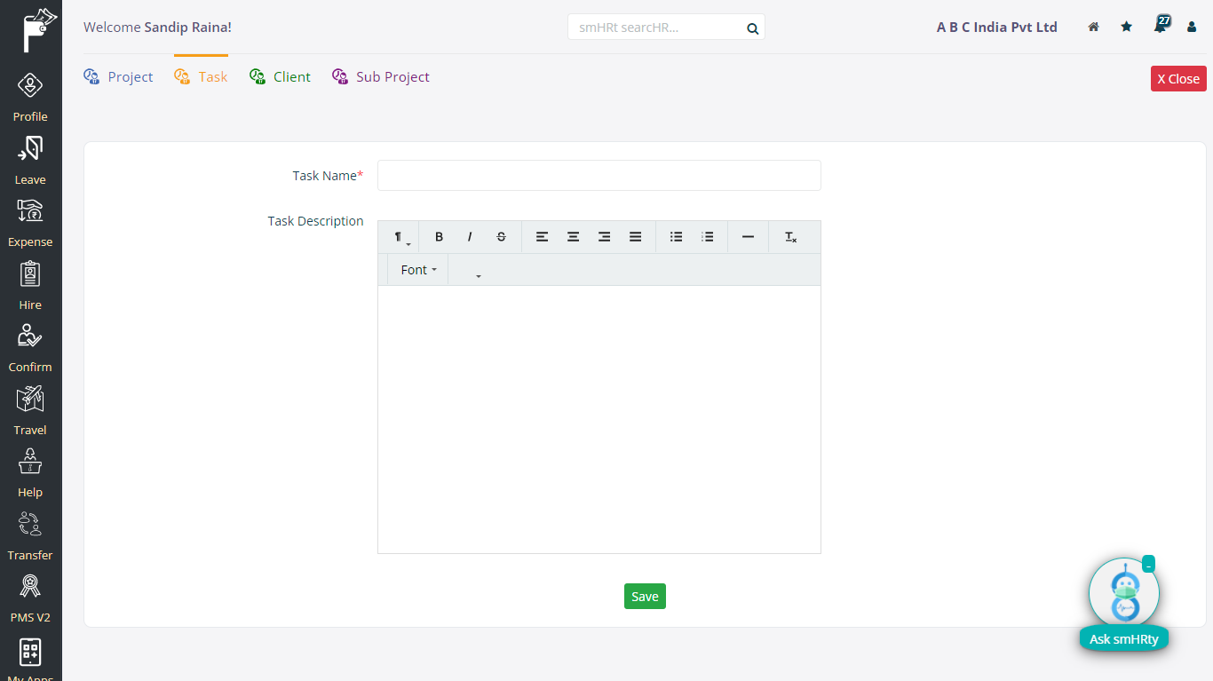 **Step 4:** Enter the required details and click on the ‘Save’ button to create a new task.