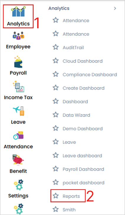 **Step 1:** Log in to the cloud portal, go to the **‘Analytics’** menu, navigate to **‘Reports**‘sub-menu.