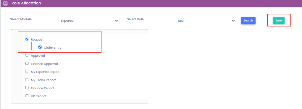 **For example**, We give access to Request, Claim Entry to the employees in the ‘User’ role.