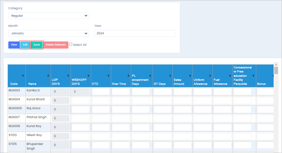 **Path**: Cloud portal>Payroll>Transactions>Monthly Input>select details>Edit>make the required changes>Save