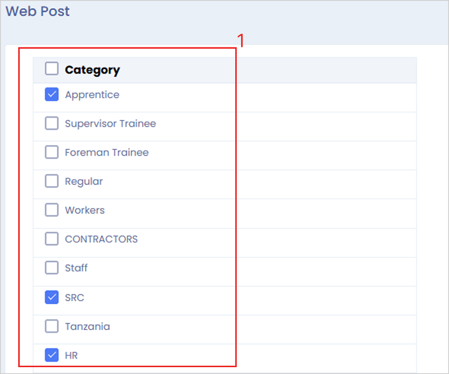 **Note**: You can not restrict payslip for a single employee. You can create a category for the employees to whom you don’t want to provide payslip and then deselect that category while don’t the web post.