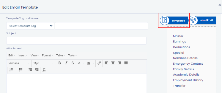 **Step 2**: Click on the ‘Edit’ Icon for the template you want to edit, make the required changes and scroll down to click on the ‘Save’ button.