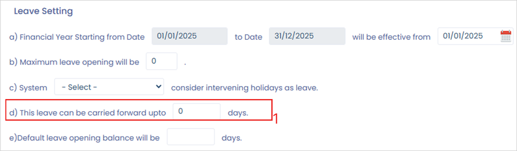 **Step 4:** Locate the **‘Carry Forward’** setting (or "Max Carry Forward") and set the value to **‘0’**. Then, click **‘Save’** to apply the configuration.