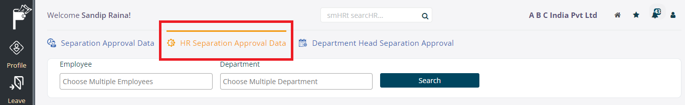 **Step 2:** Click on the ‘HR Separation Approval Data’ tab.
