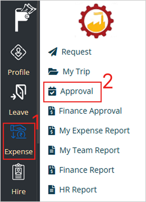 **Step 1:** Login to manager’s ESS portal, go to ‘Expense’ menu and select ‘Approval’ sub-menu.