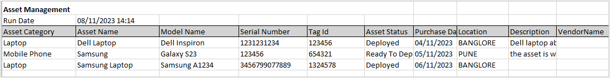 The asset reports will be downloaded in Excel format containing all the essential information.