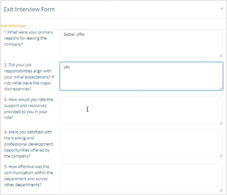 Now when employee will log into the ESS portal they will see the exit interview form.