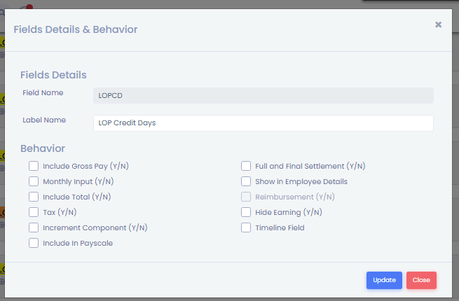 **Step 5:** Create component LOP Credit Days, don’t select any ‘Behaviour’ as shown in the snapshot below.