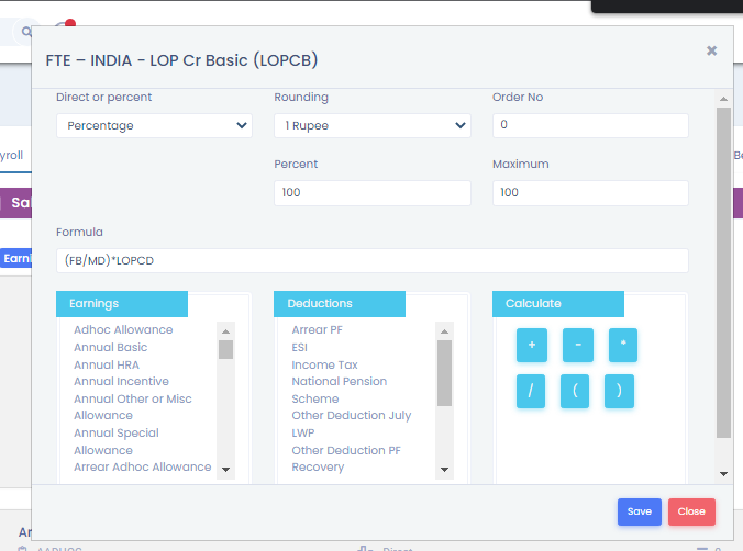 **Step 3:** Create all LOP credit components (Ex- LOP Cr Basic, LOP Cr HRA, LOP Cr Special, LOP Cr LTA, and more)