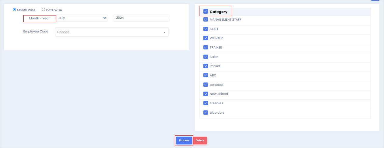 **Step 2**: Select the ‘Category’ and ‘Month-Year’ and click on the ‘Process’ button. The time consolidation will run in the background.