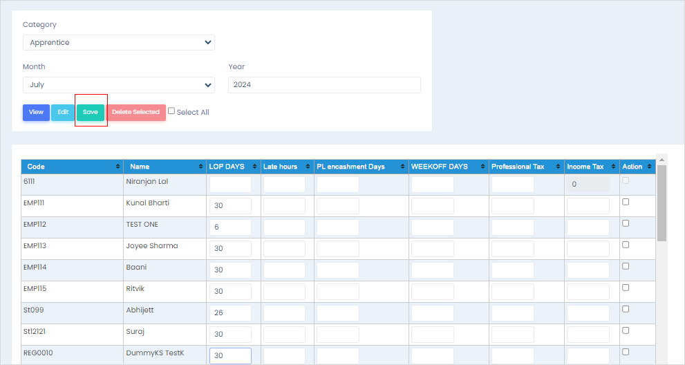 **Step 3**: In the table below, you can enter the monthly input in the respective fields as required and click on the ‘Save’ button and the monthly input will be saved.&#x20;