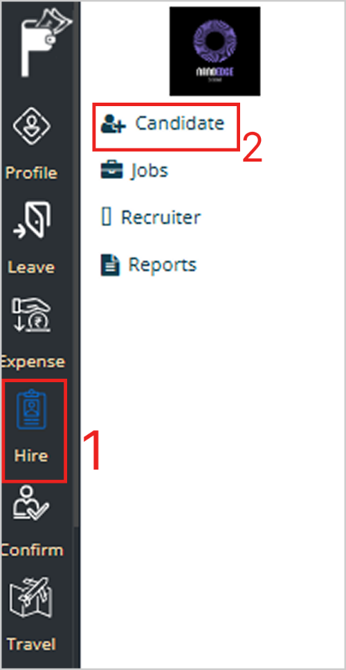 **Step 1:** Login to ESS portal, go to ‘Hire’ menu, and select ‘Candidate’ sub-menu.