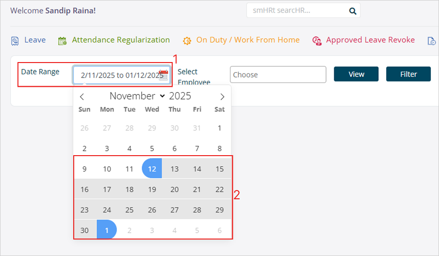 **Step 3:** Select the **‘Date Range’** for which you want to manage shifts.