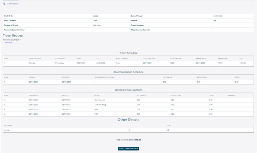 The system allows you to easily ‘Print’ or ‘Download Excel’ report by using respective buttons.