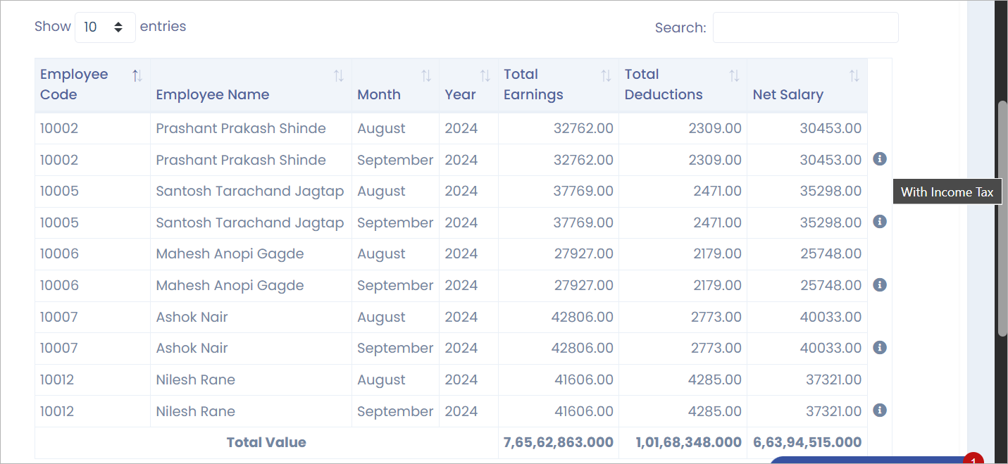 The system will now display tags on the Salary Details screen to show how salaries were processed. For instance, if the salary includes Income Tax, a tag will appear to indicate this. This feature will help HR easily understand how each salary was calculated. You’ll also see these tags on the Salary Summary page.